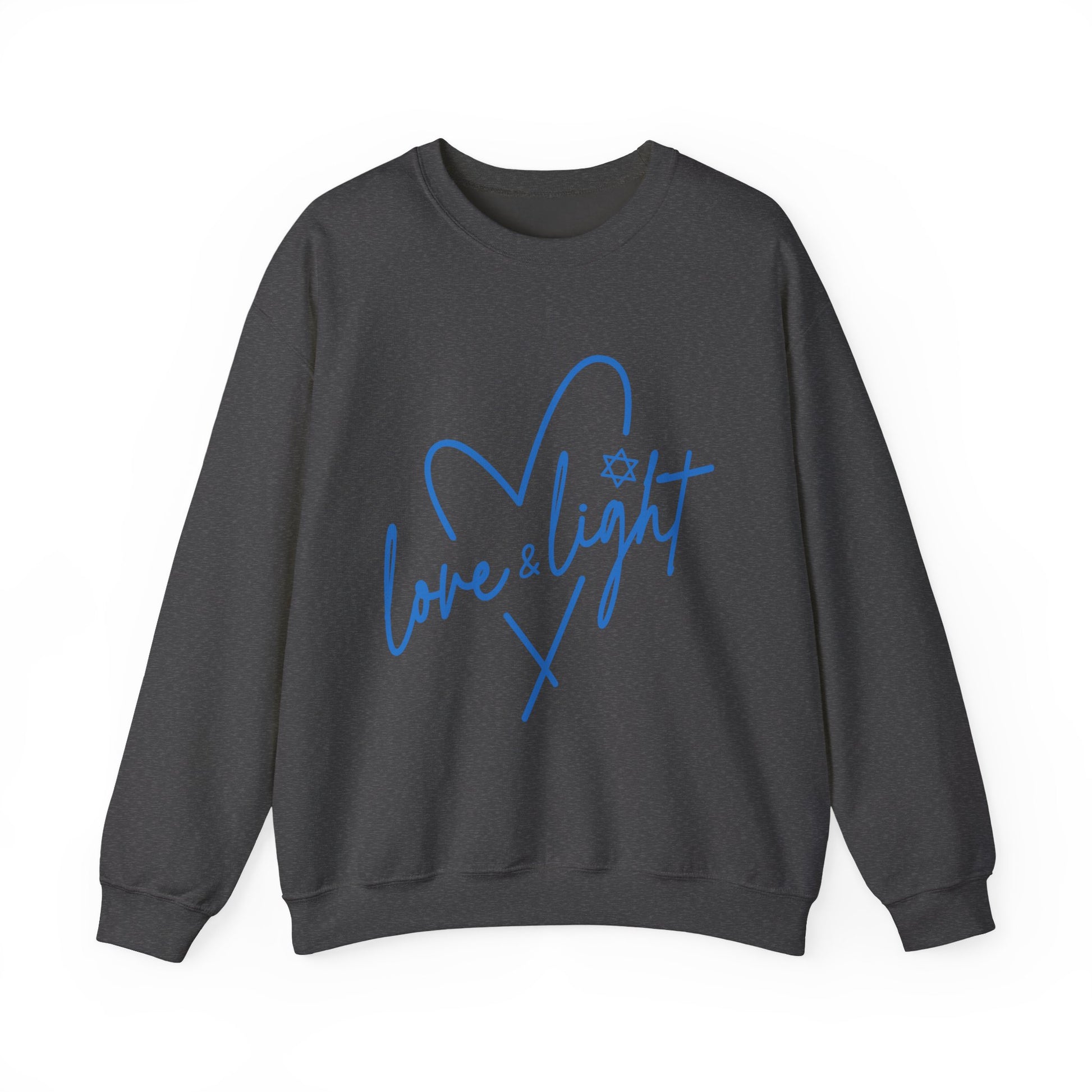 Crewneck Sweatshirt — “Love & Light” Blue Script Heart Design